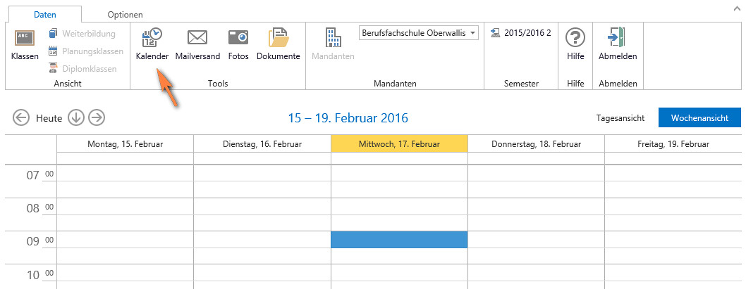 Mit dem Kalender hat die Lehrperson Zugriff auf Termine analog dem Outlook.