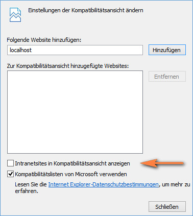 Im Intranet ist nachfolgende Einstellung zu verwenden: