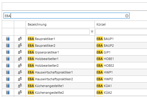 Neu existiert eine Suchfunktion, welche einen Text über sämtliche Datenbankfelder sucht, die Resultate automatisch filtert und den gefundenen Text analog markiert.